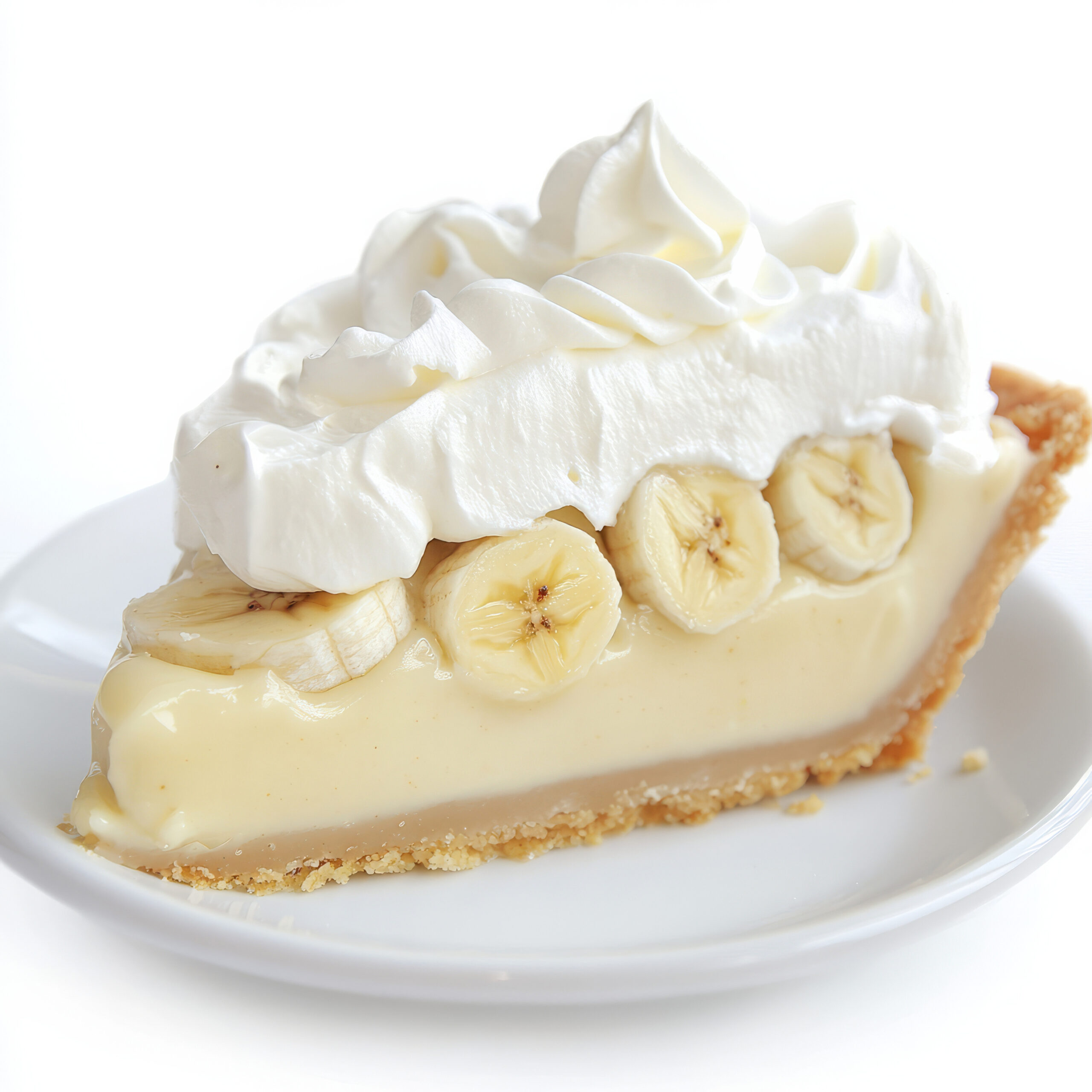 サクサクのグラハムクラッカークラストの上に冷たいカスタードとバナナ、そしてクリームが乗ったソフトなパイです。